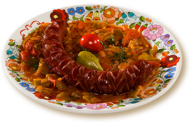 • Zuhause gilt es als vornehm, ein Stück Letschowurst (Fleischwurst) dasGericht verziert. Beliebter sind Gyulaer Wurst oder Debrecziner (debreceni páros). Letztere haben mit den bei Rewe und Penny erhältlichen Paprikawürstchen nichts gemeinsam, auch wenn sie hierzulande mit Debrecziner-Aufschrift angeboten werden. Letscho wird bei Ilona in Wien mit Paprika, Tomaten und weiteren saisonalem Gemüse so kulinarisch serviert, wie am Bild rechts. Dazu isst man am besten Weißbrot.